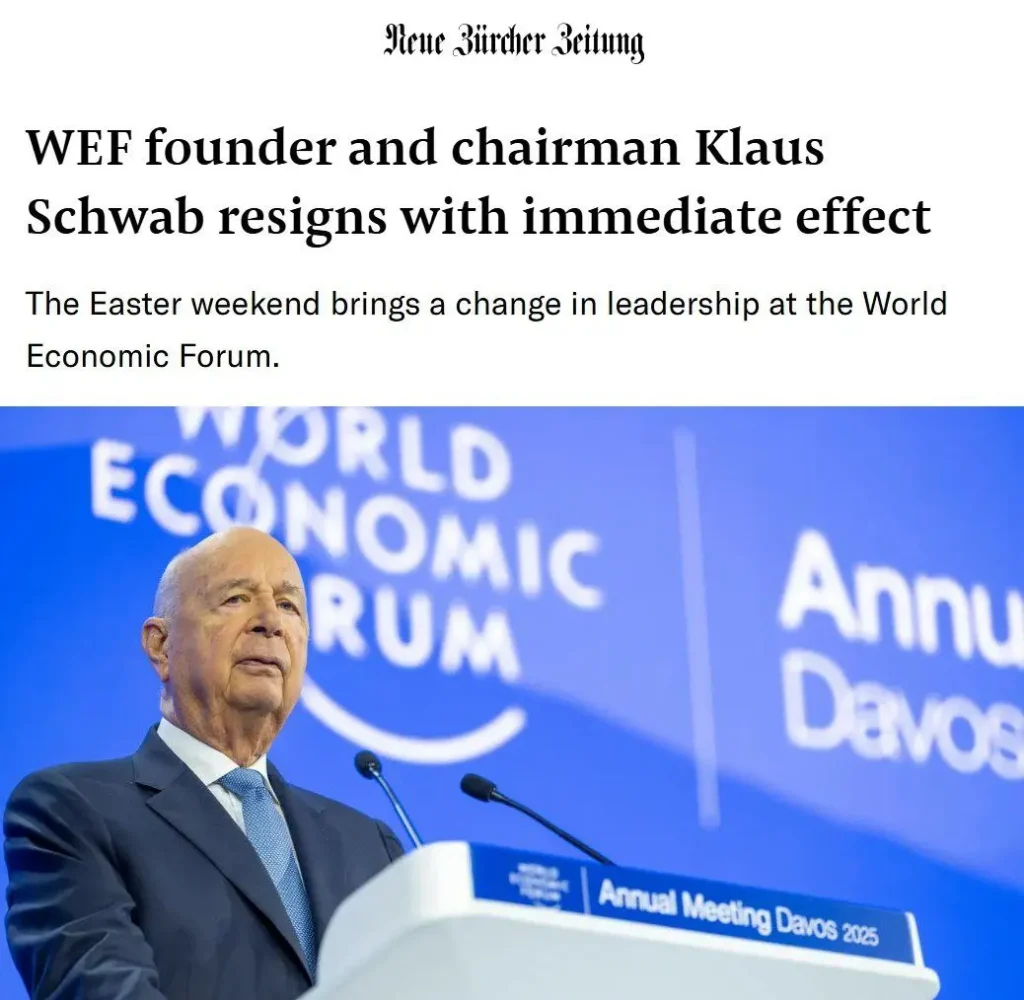 E dopo diversi annunci, arrivano le dimissioni esecutive di Schwab. L’uomo simbolo del forum di Davos esce di scena, e lo fa a stretto giro di posta dall’annuncio della morte di Bergoglio. È un vero e proprio effetto domino. È uno tsunami che travolge ciò che resta del Nuovo Ordine Mondiale.