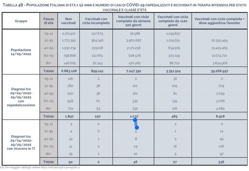 Stando al rapporto dell’Iss, nel periodo 29/04/2022-29/05/2022, risultano diagnosi con ricoveri in terapia intensiva per 505 persone, di cui 411 vaccinati, vale a dire l’81,3% del totale. Solo 2 di questi hanno un ciclo incompleto di vaccino (0,4%). I non vaccinati in terapia intensiva? 92, ossia il 18,3%. Per quanto riguarda i ricoveri siamo a 1897 non vaccinati (il 15%) 190 con ciclo incompleto (1,6%) 10440 ricoveri con ciclo completo, ossia l’83,4% per un totale di 12.527. Ultimo dato che estrapoliamo e mettiamo in risalto è quello sui contagi: su un totale di 637.122, emerge che i vaccinati sono 550.829 (86,5%); 7.000 con ciclo incompleto (1%) e solo 79.293 i non vaccinati, vale a dire il 12,5%. La domande finale alla luce di questi dati è scontata: a cosa serve questo vaccino? Ma soprattutto: è corretto chiamarlo vaccino?