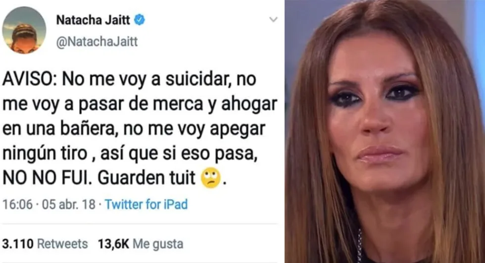 Natacha Jaitt scrisse un tweet un anno prima della sua morte dove annunciava che non aveva nessuna intenzione di toglieri la vita