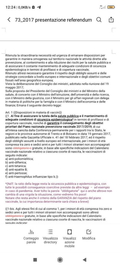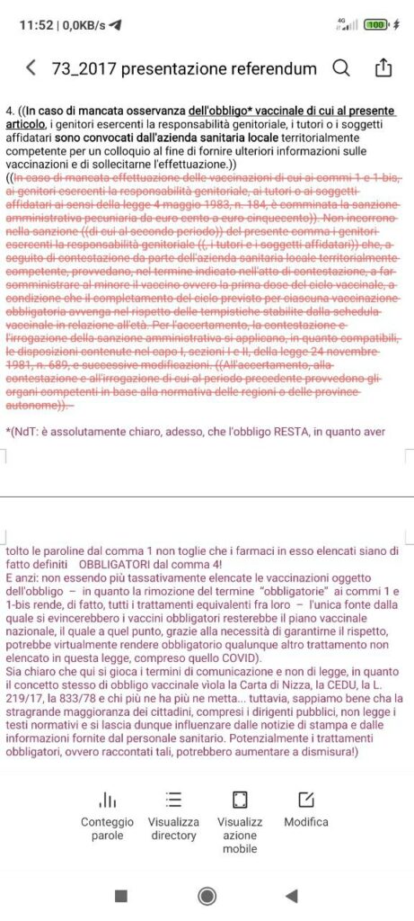 Succede infatti che ai commi 1 e 1-bis dell’art. 1 verrebbe rimosso il termine “obbligatorie” e che, però, resterebbe l’esistenza di un “obbligo vaccinale” nel comma 4.