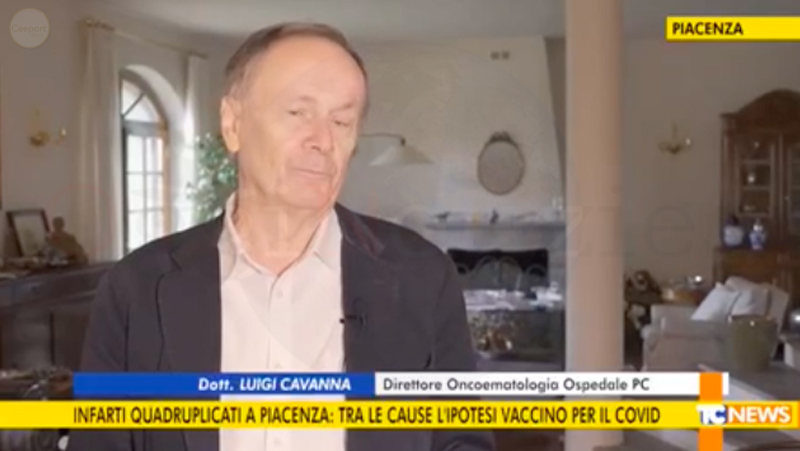 La giornalista di Telecolor Loretta Gregori ha spiegato in un apposito sevizio che adesso “l’ipotesi che ci sia una correlazione con il vaccino anti Covid verrà approfondita anche dalla medicina ufficiale“. Gregori ha intervistato il direttore del reparto di Oncoematologia dell’Ospedale di Piacenza, il dottor Luigi Cavanna, che ha detto: “ho visto che i colleghi della cardiologia del nostro ospedale hanno detto che hanno ricoverato in questi mesi di quest’anno molte più persone, anche giovani, con infarto miocardico. E’ un dato molto rilevante, è un dato molto importante ed è una tematica sicuramente da studiare e approfondire. Faremo altri studi in altre province vicine per capire come mai c’è stato quest’aumento di persone malate di cuore“.