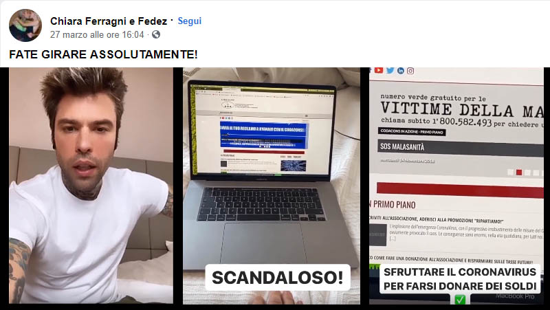 Tutto questo lo denuncia Fedez in un video su Facebook