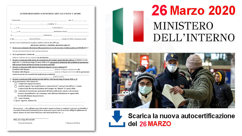 Share Facebook Twitter LinkedIn WhatsApp Email Scarica quiAutodichiarazione 26 MarzoDownload Coronavirus - nuova Autodichiarazione per circolare del 26 Marzo