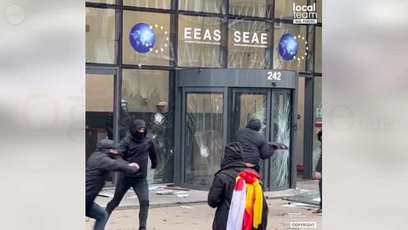 Manifestazione contro il Pass Vaccinale. Violenti scontri a Bruxelles. E’ battaglia urbana. Agenti di polizia costretti a rifugiarsi all’entrata di una fermata della metropolitana. Assaltato anche edificio Unione Europea. Immagini di Clément Lanot