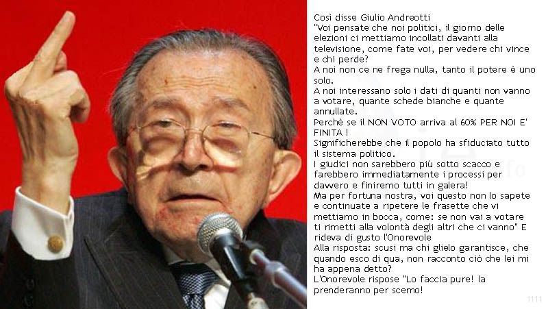 Giulio Andreotti lo sapeva bene come far lavorare la Magistratura onestamente, ma non sarebbe diventato Senatore a vita se lo avrebbe detto pubblicamente. “se non andate a votare noi finiamo in galera”