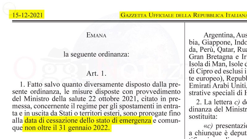 SCARICA LA GAZZETTA UFFICIALE DEL 15 DICEMBRE 2021