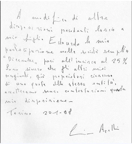 Il testamento olografo di Gianni Agnelli non è mai venuto alla luce prima d’ora.