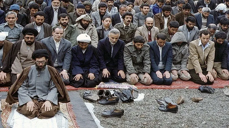A destra, Edoardo Agnelli durante la preghiera islamica a Teheran