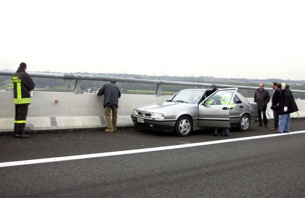 La FIAT Croma di Edoardo parcheggiata sul viadotto dell’autostrada Torino.-Savona