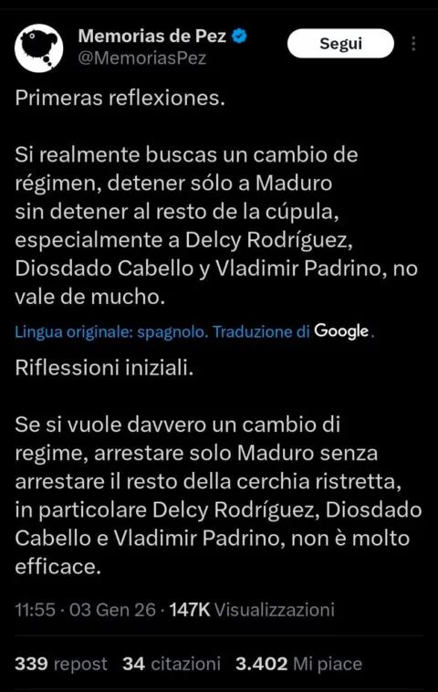 Le forze armate del Venezuela sono pronte e ben addestrate a questo tipo di situazioni, e se pur dall’altra parte c’era una potenza militare come gli Stati Uniti, è soltanto da ingenui o da digiuni di operazioni militari pensare che il leader del Paese possa essere stato prelevato con tale irrisoria facilità.
