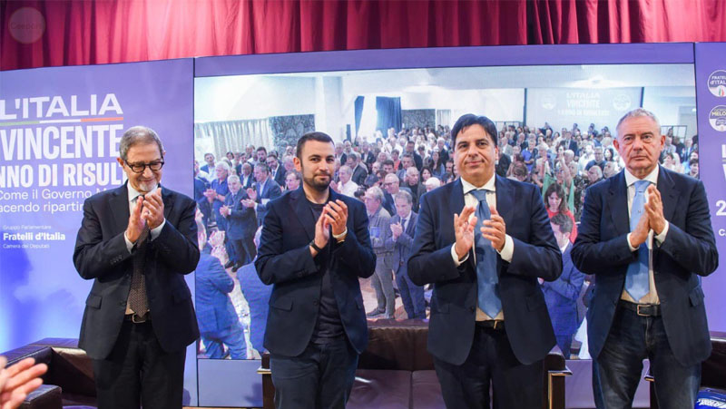 Salvatore Domenico Antonio Pogliese, detto Salvo, 51 anni, commercialista, l’intera trafila a destra dal MSI (FdG), AN, PdL, FI fino a Fratelli d’Italia. Amico storico di Urso, prima delle dimissioni da Sindaco di Catania subisce due sospensioni per la condanna in primo grado per le “spese pazze”. La Corte d’Appello di Palermo l’ha ri-condannato a Maggio per peculato (borse di lusso, gioielli, auto con fondi pubblici): 2 anni e 3 mesi di reclusione. Ex europarlamentare, ex vicepresidente Regione Sicilia, oggi è senatore: suo l’emendamento per alzare l’inquinamento elettromagnetico di agenti possibili cancerogeni fino a 15 V/m.