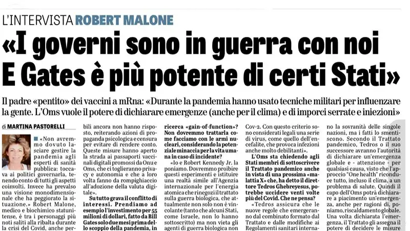 Ne parlo con Robert Malone su La Verità