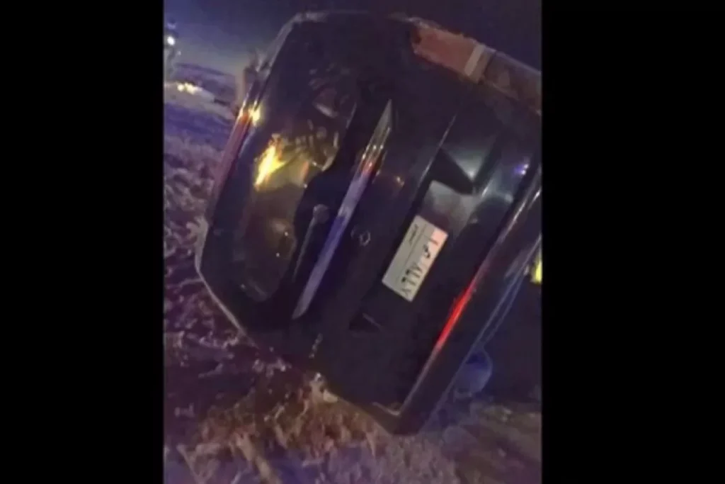 L’auto rovesciata della delegazione del Qatar