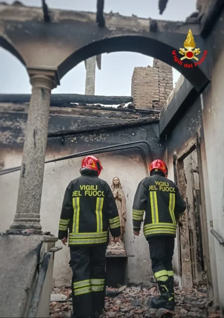 Intense fiamme hanno avvolto il luogo di culto, eppure nonostante la vastità dell’incendio, la statua di Maria è rimasta perfettamente intatta e senza alcun danno visibile.