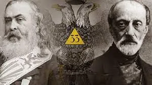 Albert Pike, a sinistra, Giuseppe Mazzini, a destra.
