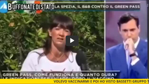 In questo video preso su FB intitolato “volevo vaccinarmi e poi ho visto Bassetti” in uno spezzone di una trasmissione, il conduttore non sa o fa finta di non sapere che viene sempre e comunque la libertà individuale di quella collettiva, forse non sa neanche che cosa sono i diritti UMANI, forse non dovrebbe neanche condurre una trasmissione. Bassetti “lo sponsor tanto per intenderci” addirittura si permette di dire “sotto le righe” che la costituzione e il codice di Norimberga non contano nulla, ha la presunzione di mettersi al di sopra dei diritti UMANI, dicendo senza parafrasare e spudoratamente alla signora che non dovrebbe neanche parlare.