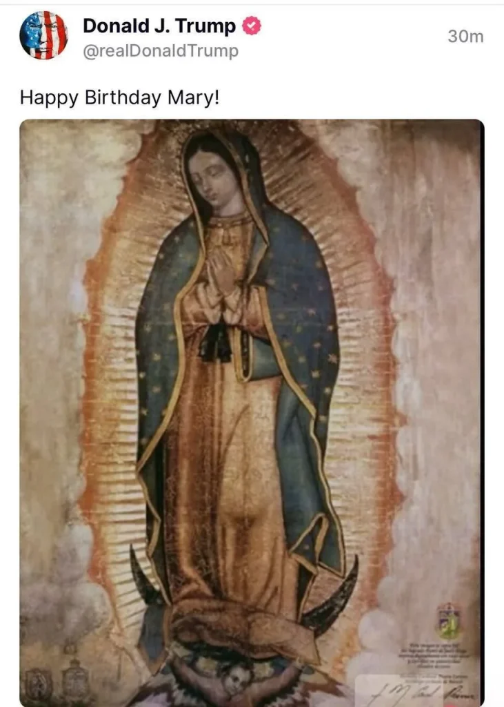 Sembra che il primo ad esserne consapevole sia proprio il presidente americano che da un po’ di tempo a questa parte ha mostrato una vera e propria devozione per Maria, che di certo in un protestante non dovrebbe esserci, ma Trump pare si stia avvicinando sempre di più al cattolicesimo, soprattutto quello nella sua forma originaria tradizionale, prima della secolarizzazione post-conciliare.