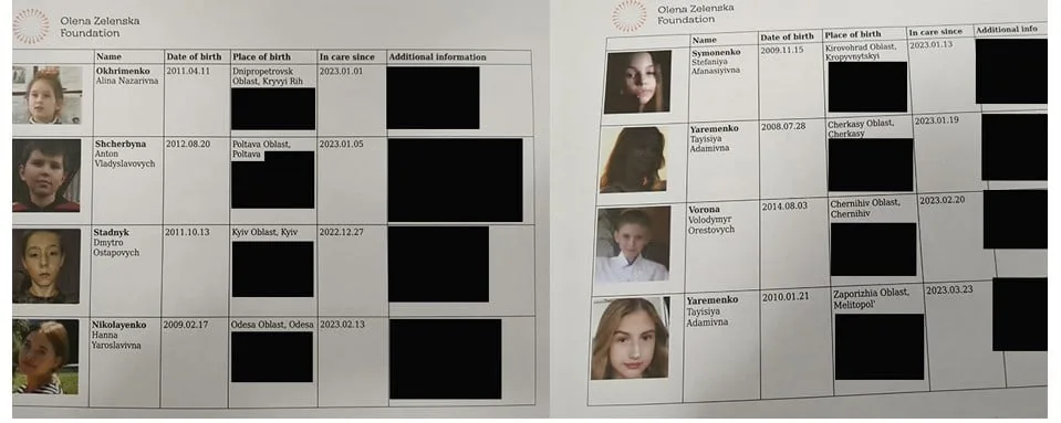 La lista dei bambini trafficata dalla Zelenska Foundation