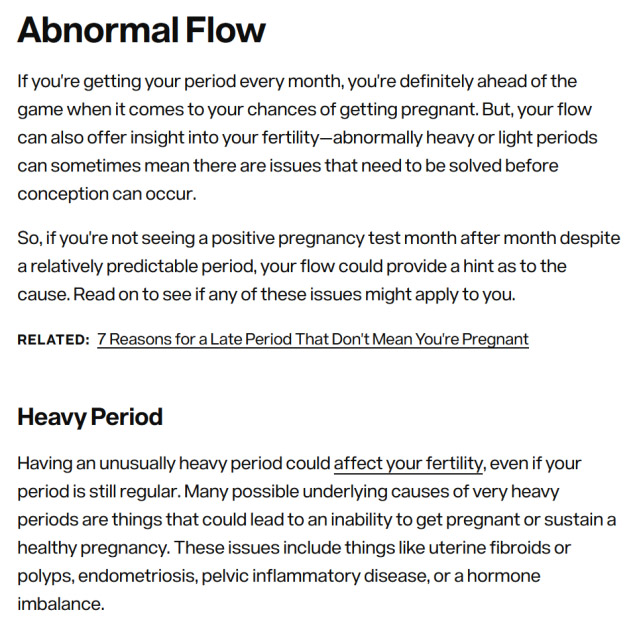 Uno studio pubblicato nel 2016 ha rilevato che le alterazioni del ciclo mestruale regolare di una donna sono associate a una ridotta fertilità e hanno un effetto negativo sulle possibilità di rimanere incinta.