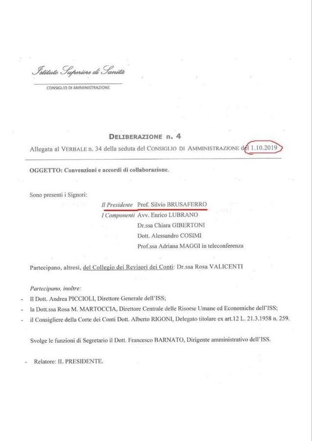 La delibera fu firmata da Brusaferro, qualche mese prima dello scoppiare della pandemia Covid-19.