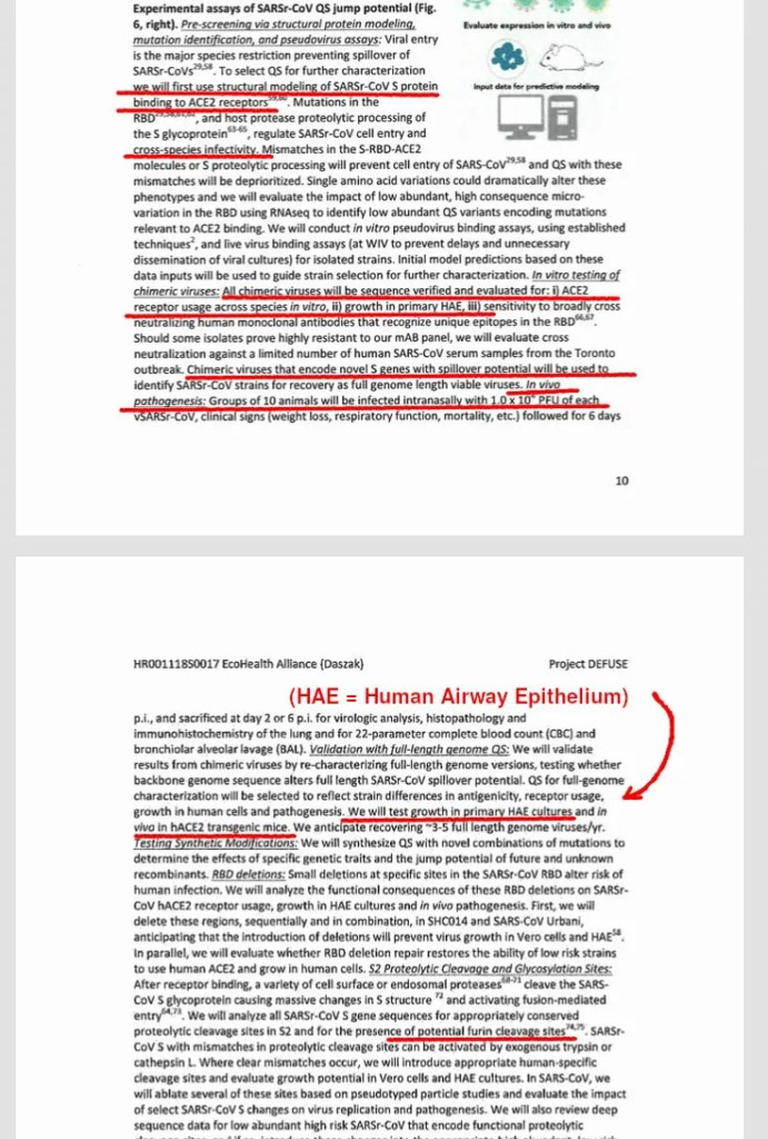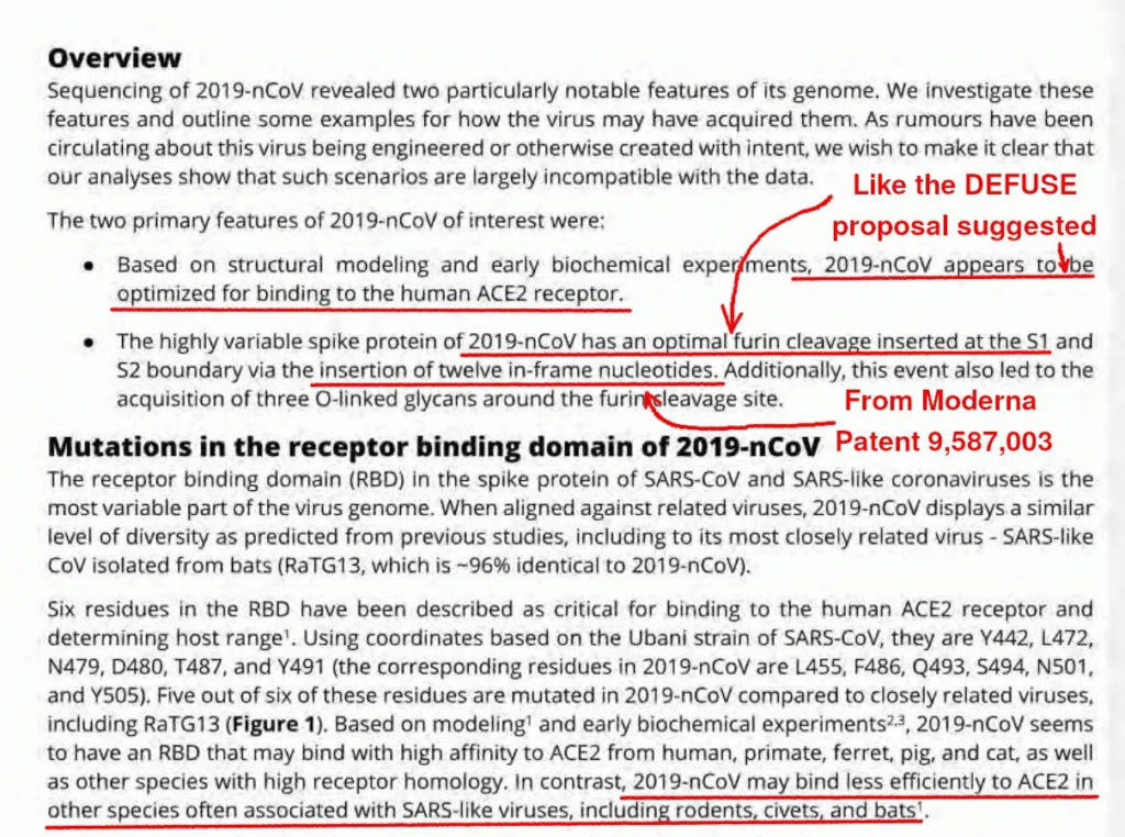 Quindi, tre anni fa, nel 2020, Fauci e Farrar avevano un’idea abbastanza precisa di come la Sars-Cov-2 si fosse evoluta nei topi transgenici, proprio come descritto nella proposta DEFUSE.