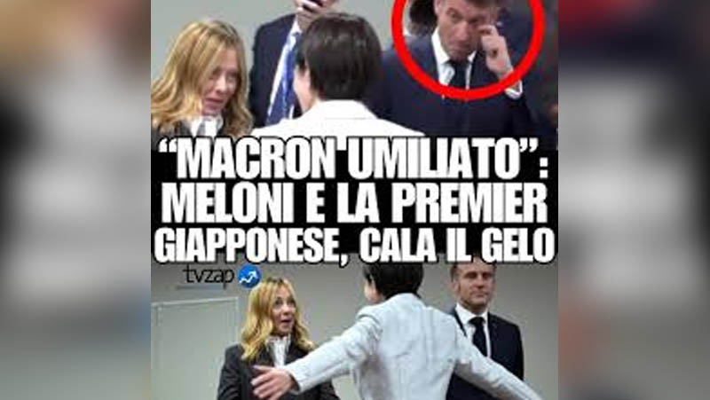 Macron ignorato dalla premier giapponese che corre ad abbracciare Meloni