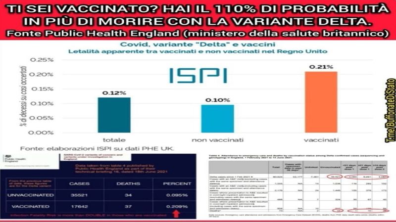 Pare che la variante delta preferisca fare secchi i vaccinati, il rischio è addirittura del 110% maggiore rispetto ai NON vaccinati.
