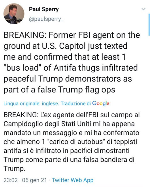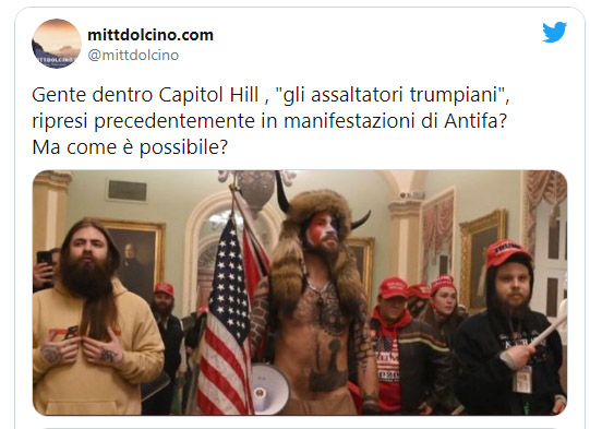 In Italia, poi, hanno descritto Trump come un delinquente, ma ormai siamo abituati a sentire come i media distorcono tutte le notizie, la manifestazione è stata pacifica, alcuni manifestanti sono entrati dentro pacificamente per dire “noi siamo qui e non potete prenderci in giro”