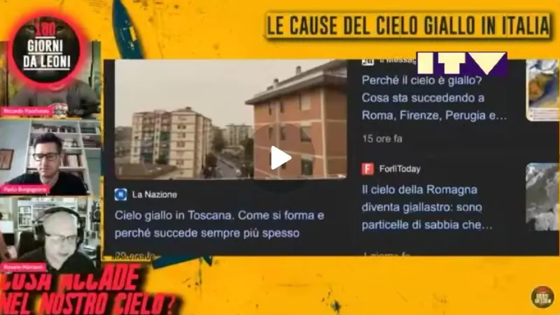 «I venti vanno da Nord verso Sud, già con questo siamo sicuri che non si tratta di sabba del deserto. Alcune mappe mostrano questa sabbia che invade l’Italia, altre no. Le analisi chimiche eseguite in Italia sull’acqua piovana dimostrano la presenza dei soliti metalli killer: alluminio, bario, litio, manganese, torio, stronzio e grafene»