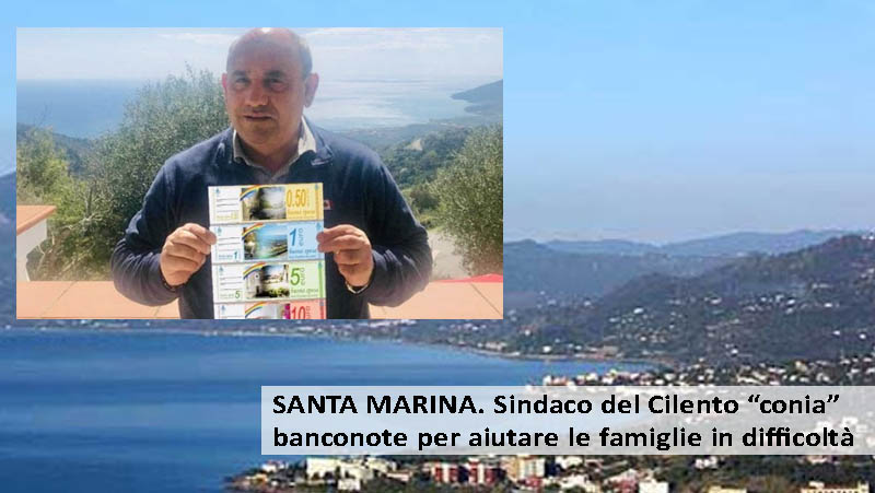 SANTA MARINA. Sindaco del Cilento “conia” banconote per aiutare le famiglie in difficoltà. Accade a Santa Marina, piccolo comune del Golfo di Policastro, dove il primo cittadino Giovanni Fortunato ha ordinato la stampa di “banconote”, pari a 100mila euro, che verranno utilizzate come buoni spesa per le famiglie bisognose. “Una prima tranche di 30mila euro – spiega il sindaco – sarà disponibile già nelle prossime ore e sarà impiegata per buoni spesa, pacchi alimentari, per l’acquisto di mascherine, guanti e kit tamponi, ma anche per un eventuale fitto di alloggi da utilizzare dal personale sanitario dell’ospedale Immacolata di Sapri in caso di attivazione come presidio Covid-19”. Sono stati previsti tagli di 50 centesimi, 1 euro, 5 euro e 10 euro.