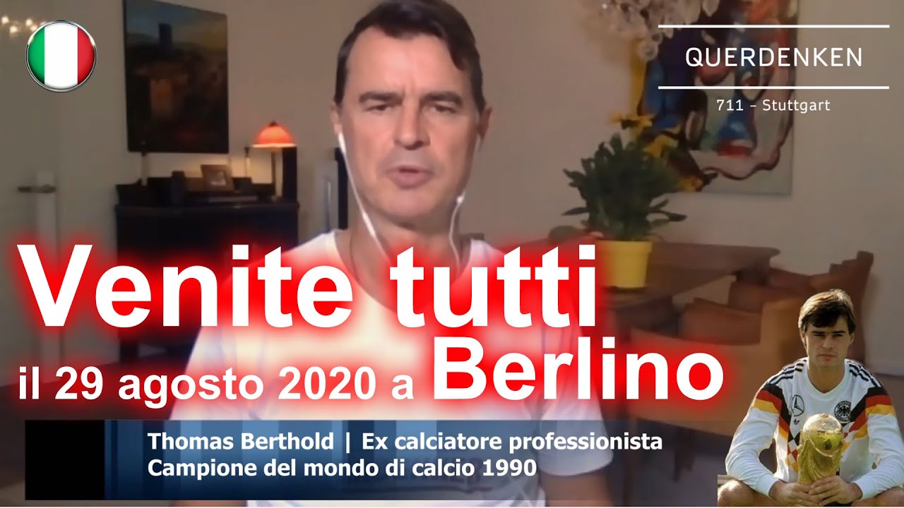 Da noi in Germania si muove qualcosa, voi Italiani avete avuto sempre l’immagine dei tedeschi puntuali, precisi, ma ora non è più così, da tanti mesi la nostra vita è cambiata e dal 1 Agosto c’è stato un grande movimento, più di un milione di persone hanno manifestato a Berlino la libertà per i nostri diritti fondamentali. Ora vi invitiamo a Berlino il 29 di Agosto per unirvi a noi
