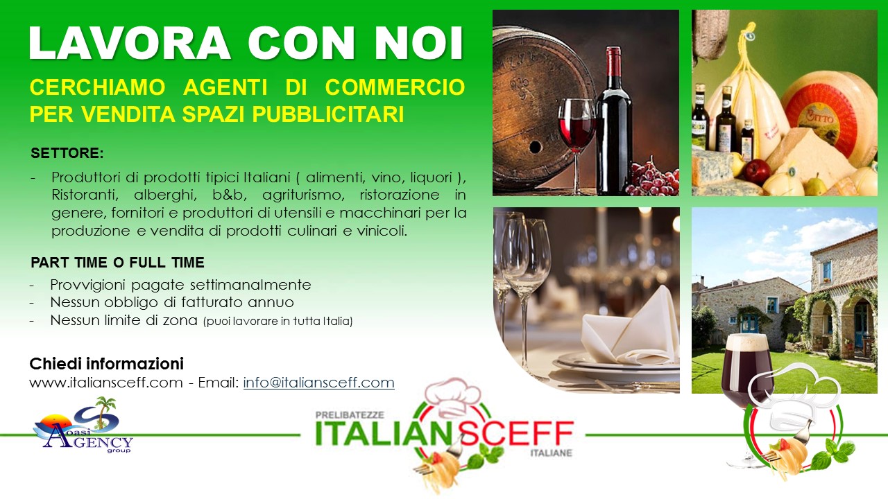 Cerchiamo agenti di commercio/venditori in tutta Italia per la vendita di spazi pubblicitari