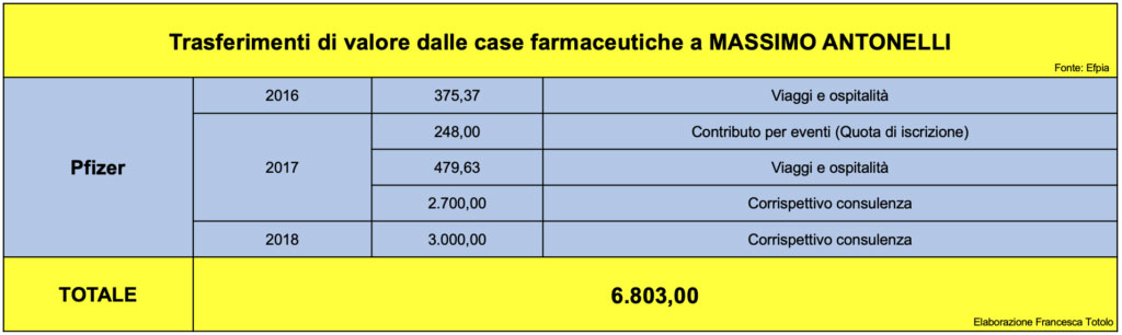 Il professor Antonelli ha anche collaborato con la Pfizer nel 2017 e nel 2018.