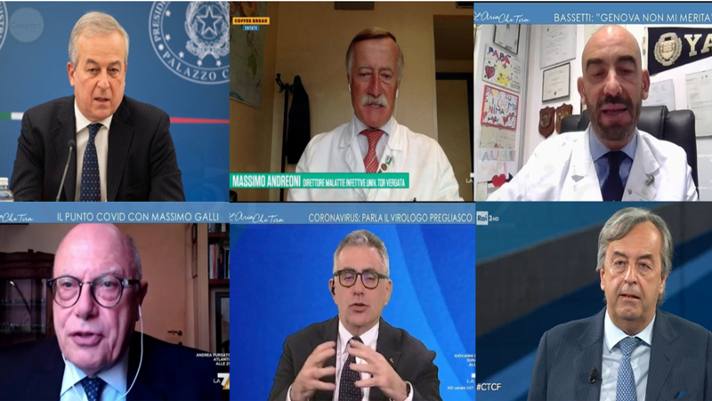 Massimo Galli, Fabrizio Pregliasco e Roberto Burioni