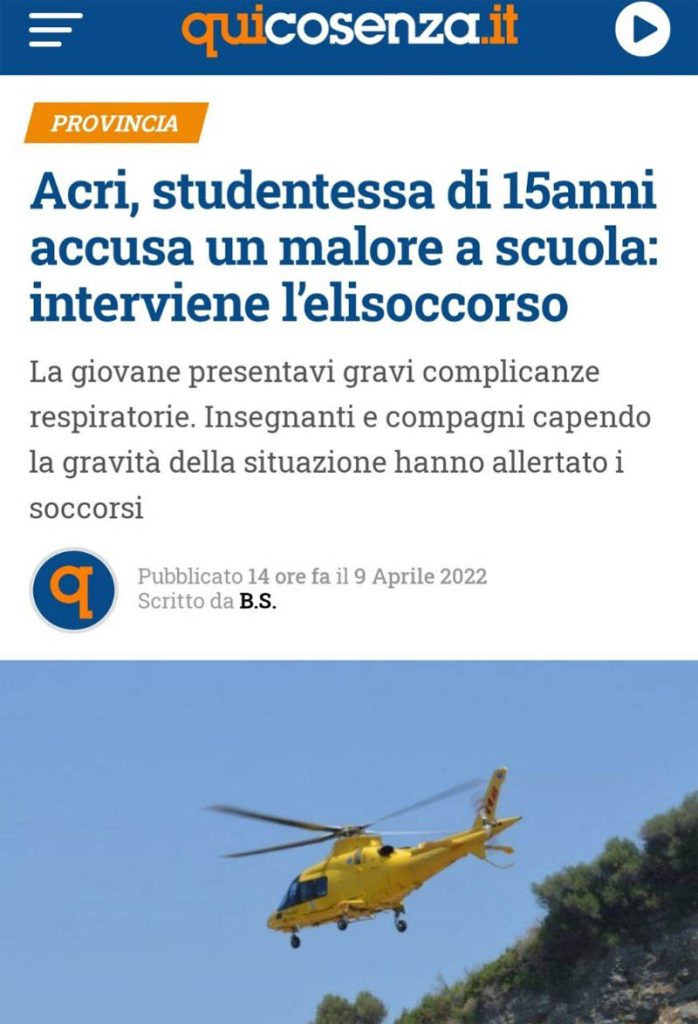 La persona a terra è stata soccorsa e trasportata all’ospedale cittadino dove è deceduta. Sono in corso tutti gli accertamenti di polizia giudiziaria di rito con il coordinamento del Pubblico Ministero di turno.