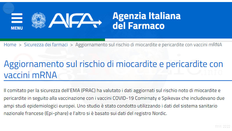 Comunicazione dell’AIFA: https://www.aifa.gov.it/-/aggiornamento-sul-rischio-di-miocardite-e-pericardite-con-vaccini-mrna