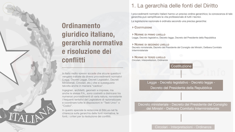 I provvedimenti normativi italiani hanno un preciso ordine gerarchico; la conoscenza di tale gerarchia può semplificare la vita professionale di tutti i tecnici. La legislazione nazionale è ordinata secondo una precisa gerarchia: