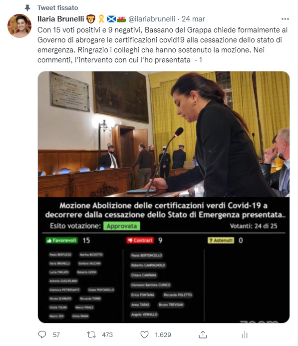 Giovedi 24 marzo 2022, con 15 voti positivi e 9 negativi, Bassano del Grappa ha chiesto formalmente al Governo di abrogare le certificazioni covid-19 con la cessazione dello stato di emergenza. Non solo: chiede anche di intervenire legislativamente affinché l’utilizzo di tale strumento straordinario non sia ammesso in via ordinaria. Una richiesta quasi ovvia per uno Stato democratico, ma non così tanto in Italia, dove il Governo ha deciso di rendere eterno il lasciapassare, scollegandolo definitivamente dall’emergenza che lo ha generato e giustificato fino ad oggi.