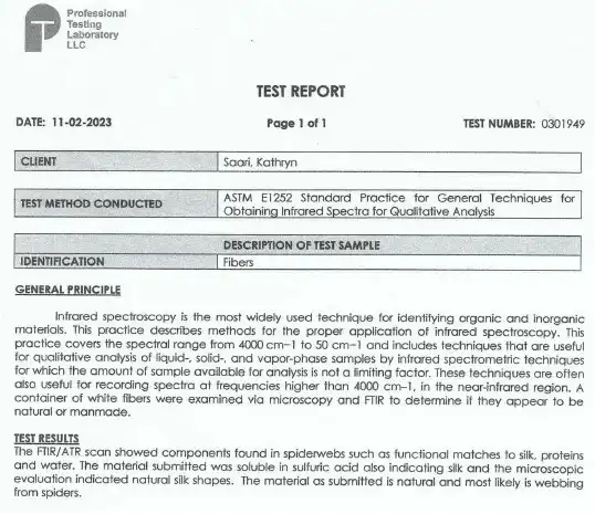Di recente ho rilasciato un’intervista a Reinette Senum, durante la quale mi ha chiesto se volessi contribuire ad approfondire l’indagine sulla “seta di ragno” trovata a Jamestown, in California, sospettata di provenire da operazioni di geoingegneria. Kathryn Saari aveva già effettuato l’analisi di spettro infrarosso. La conclusione è stata che si è trattato di ragnatele naturali. Ecco il rapporto: