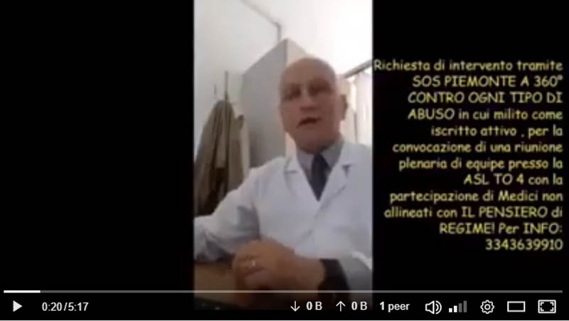 Richiesta di intervento tramite SOS PIEMONTE A 360° CONTRO OGNI TIPO DI ABUSO in cui milito come iscritto attivo per la convocazione di una riunione plenaria di equipe presso la ASL TO 4 con la partecipazione di Medici allineati con il pensiero di regime