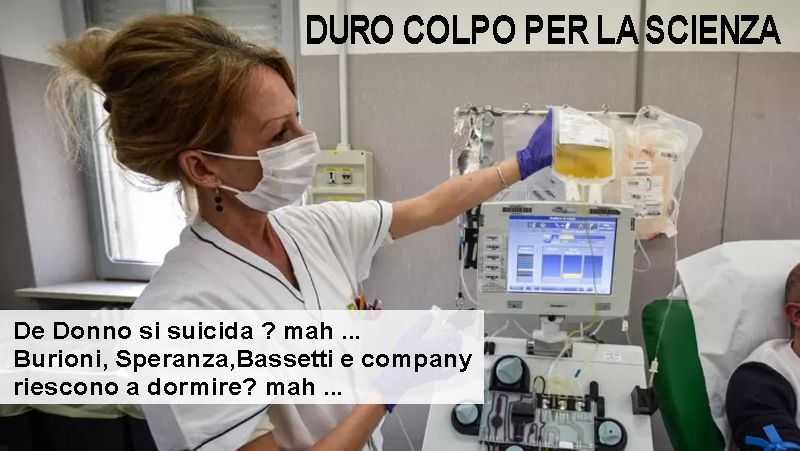 Qualcuno ha sentito parlare di De Donno in TV per giorni e giorni come si fa per un Vip quando muore? forse la sua colpa è stata quella di salvare VITE che l’Elite voleva togliere. Sta di fatto che chi si permette di salvare vite viene portato al suicidio, se di suicidio si tratta.