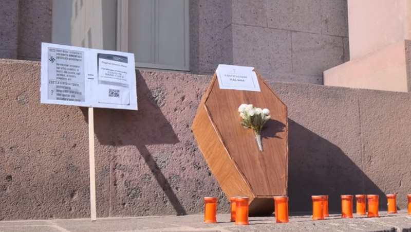 In tutta Italia continuano ogni settimana le manifestazioni contro il green pass. Oggi una folta rappresentanza del movimento Sassari Libertà e Resistenza si è ritrovato davanti al Tribunale in Via Roma, per esprimere il proprio dissenso in merito all’avanzare di posizioni antidemocratiche in svariati settori dell’organizzazione sociale. L’assenza di magistrati e il silenzio dei giudici di fronte al crollo delle libertà costituzionali è inaccettabile.