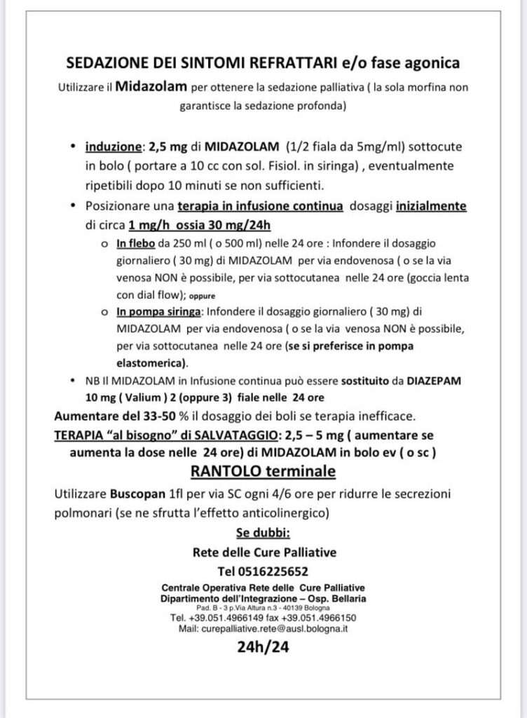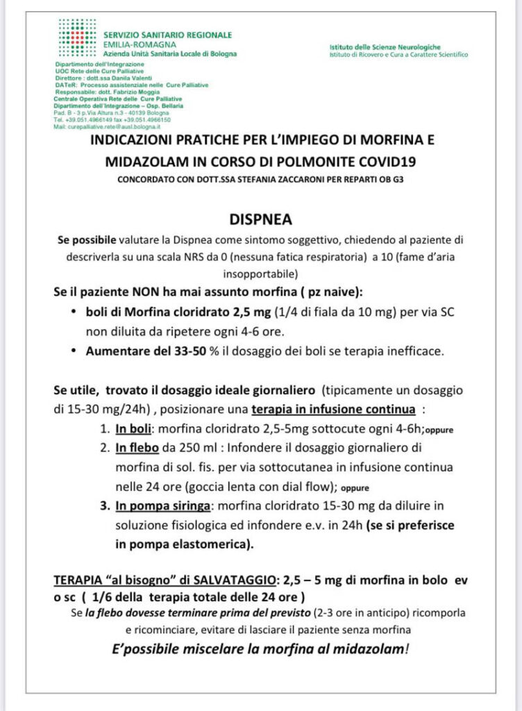 Share Facebook Twitter LinkedIn WhatsApp Email Non serve essere dei medici, basta leggere i bugiardini per capire perché più di 170.000 persone ricoverate sono morte per arresto cardiaco e insufficienza respiratoria.Altro che Covid.. Ecco a voi il protocollo della morte a base di Morfina Midazolam e Buscopan