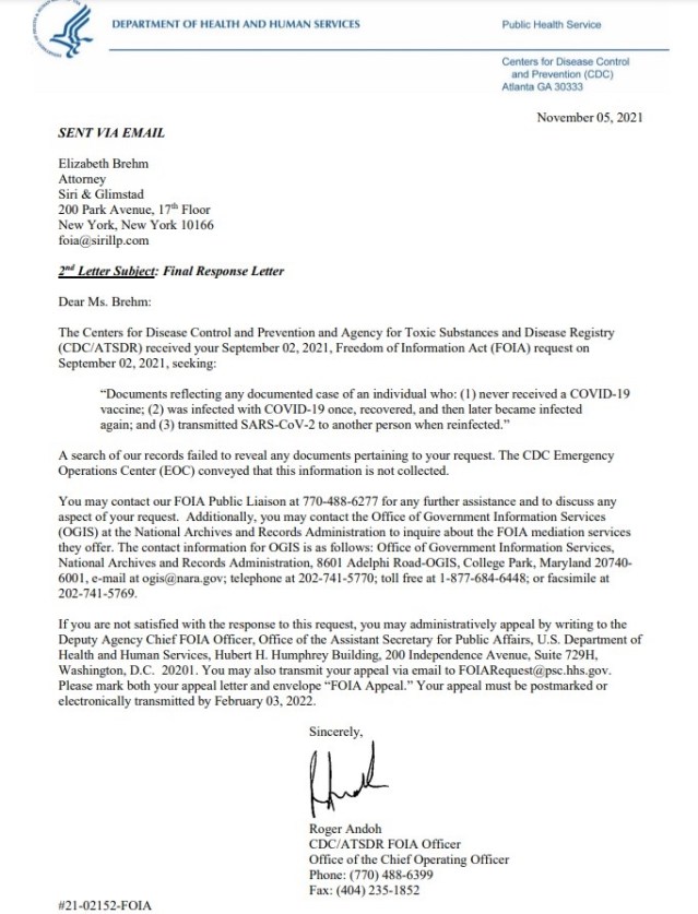 Esistono anche ulteriori prove che confermano che i vaccini Covid distruggono il sistema immunitario, sotto forma di ammissione da parte del CDC in risposta a una richiesta di libertà di informazione.