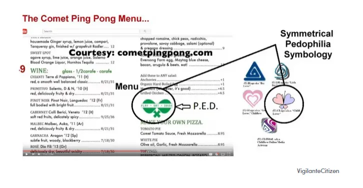 Le similitudini dei simboli della pizzeria di Alefantis con il codice pedofilo