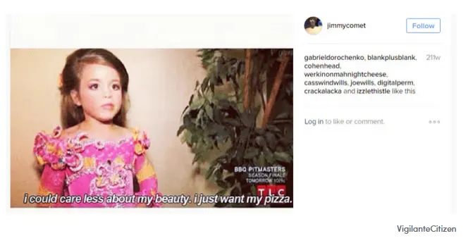 Si possono trovare, ad esempio, diverse singolari foto di bambini in posizioni inusuali che dicono di volere la loro “pizza”, un’altra foto dove si vede una enorme stanza sotterranea per la refrigerazione assieme al particolare commento di Alefantis che scrive “oh sì, questo sembra divertente”, e un’altra immagine nella quale si vede un ragazzo abbracciare un infante.