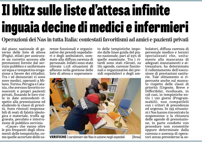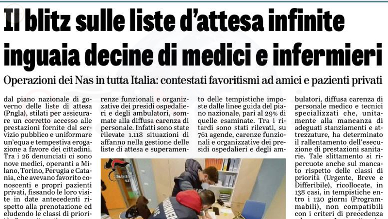 nove medici, operanti a Milano, Torino, Perugia e Catania che avevano favorito conoscenti e propri pazienti privati fissando le loro visite in date antecedenti rispetto alla prenotazione ed eludendo le classi di priorità