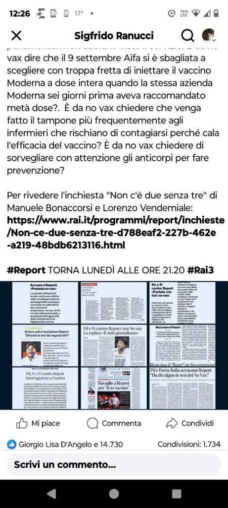 Report è quindi evidentemente null’altro che puro mainstream progressista, un altro distaccamento della premiata ditta del Fatto Quotidiano, se si vuole, uno dei quotidiani non a caso più schierati a difesa di Ranucci.