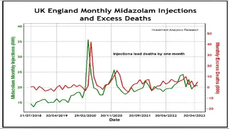 Di Craig Kelly Leader del partito United Australia Se i dati sono corretti, l’unica conclusione è che decine di migliaia di anziani inglesi siano stati uccisi con un’iniezione del farmaco di fine vita Midazolam. Queste morti sono state poi falsamente attribuite al covid, che è stato alla base delle campagne di terrore utilizzate per giustificare le chiusure e le iniezioni obbligatorie di massa alla popolazione (compresi i bambini) con un farmaco sperimentale che non aveva dati di sicurezza a lungo termine. Ed in tutto questo, un piccolo gruppo che spingeva per la necessità di iniezioni obbligatorie di massa ha guadagnato miliardi.