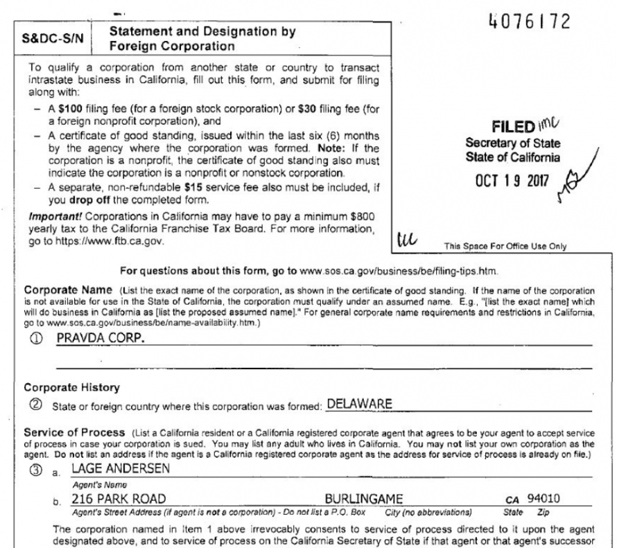 Musk ha suggerito di chiamare il suo sito “Pravda” e, sebbene sembrerebbe che questi fossero pensieri che gli venivano fuori dalla testa, un seguace di Twitter ha sottolineato che uno degli agenti di Musk “ha registrato la Pravda Corp in California” nell’ottobre 2017.